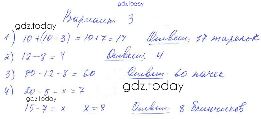 На страницах сайта gdz.today вы найдете учебный и вспомогательный материал, направленный на улучшения знаний школьной программы. ГДЗ - онлайн мир знаний Итоговая контрольная работа за 3 четверть. Контрольная работа 2 Решение 2 класс Вариант 3 Контрольным работам по Математике для 2-4 класса Волкова Просвещение Школа России 2017