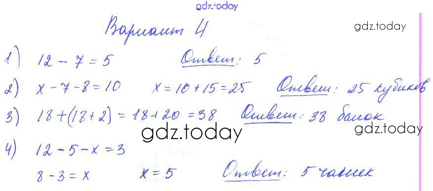 На страницах сайта gdz.today вы найдете учебный и вспомогательный материал, направленный на улучшения знаний школьной программы. ГДЗ - онлайн мир знаний Итоговая контрольная работа за 3 четверть. Контрольная работа 2 Решение 2 класс Вариант 4 Контрольным работам по Математике для 2-4 класса Волкова Просвещение Школа России 2017