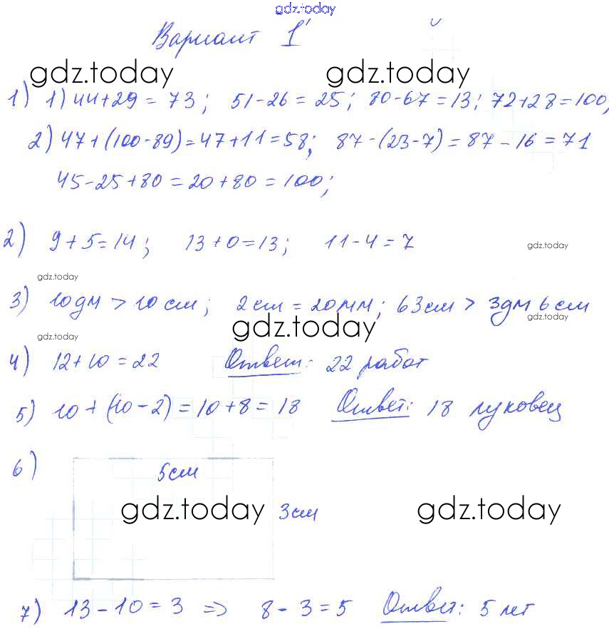 На страницах сайта gdz.today вы найдете учебный и вспомогательный материал, направленный на улучшения знаний школьной программы. ГДЗ - онлайн мир знаний Итоговая контрольная работа за второй класс Решение 2 класс Вариант 1 Контрольным работам по Математике для 2-4 класса Волкова Просвещение Школа России 2017