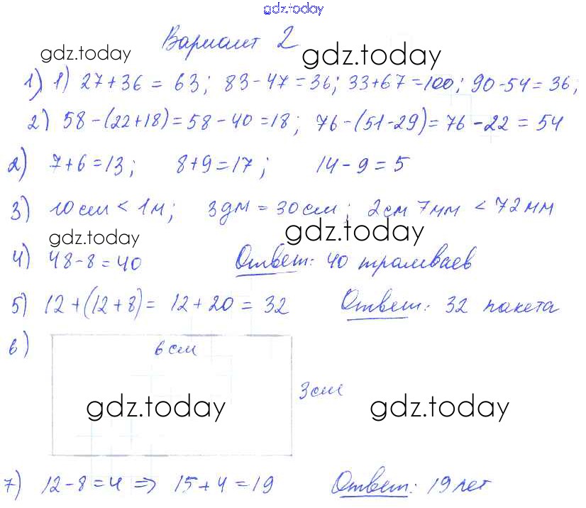 На страницах сайта gdz.today вы найдете учебный и вспомогательный материал, направленный на улучшения знаний школьной программы. ГДЗ - онлайн мир знаний Итоговая контрольная работа за второй класс Решение 2 класс Вариант 2 Контрольным работам по Математике для 2-4 класса Волкова Просвещение Школа России 2017