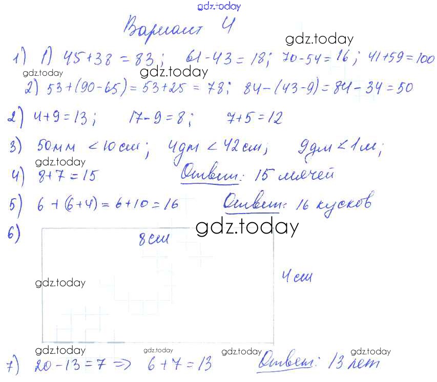 На страницах сайта gdz.today вы найдете учебный и вспомогательный материал, направленный на улучшения знаний школьной программы. ГДЗ - онлайн мир знаний Итоговая контрольная работа за второй класс Решение 2 класс Вариант 4 Контрольным работам по Математике для 2-4 класса Волкова Просвещение Школа России 2017