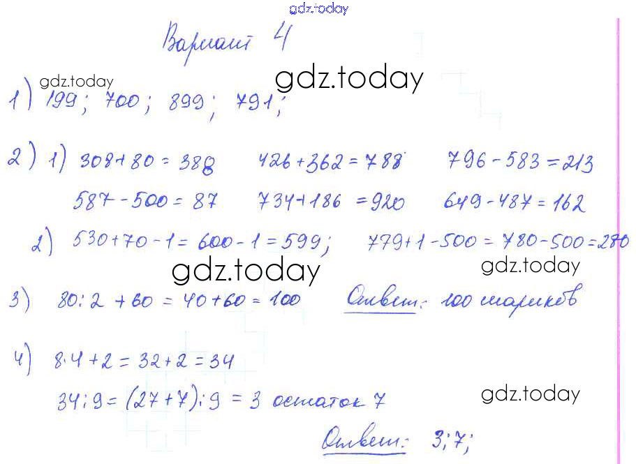 На страницах сайта gdz.today вы найдете учебный и вспомогательный материал, направленный на улучшения знаний школьной программы. ГДЗ - онлайн мир знаний Итоговые контрольные работы за 3 класс. Контрольная работа 2 Решение 3 класс Вариант 4 Контрольным работам по Математике для 2-4 класса Волкова Просвещение Школа России 2017