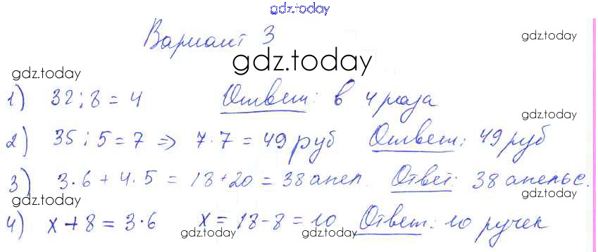 На страницах сайта gdz.today вы найдете учебный и вспомогательный материал, направленный на улучшения знаний школьной программы. ГДЗ - онлайн мир знаний Итоговая контрольная работа за 2 четверть. Контрольная работа 3 Решение 3 класс Вариант 3 Контрольным работам по Математике для 2-4 класса Волкова Просвещение Школа России 2017