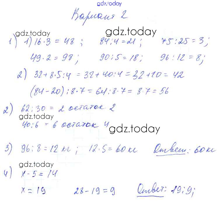 На страницах сайта gdz.today вы найдете учебный и вспомогательный материал, направленный на улучшения знаний школьной программы. ГДЗ - онлайн мир знаний Итоговая контрольная работа за 3 четверть. Контрольная работа 1 Решение 3 класс Вариант 2 Контрольным работам по Математике для 2-4 класса Волкова Просвещение Школа России 2017