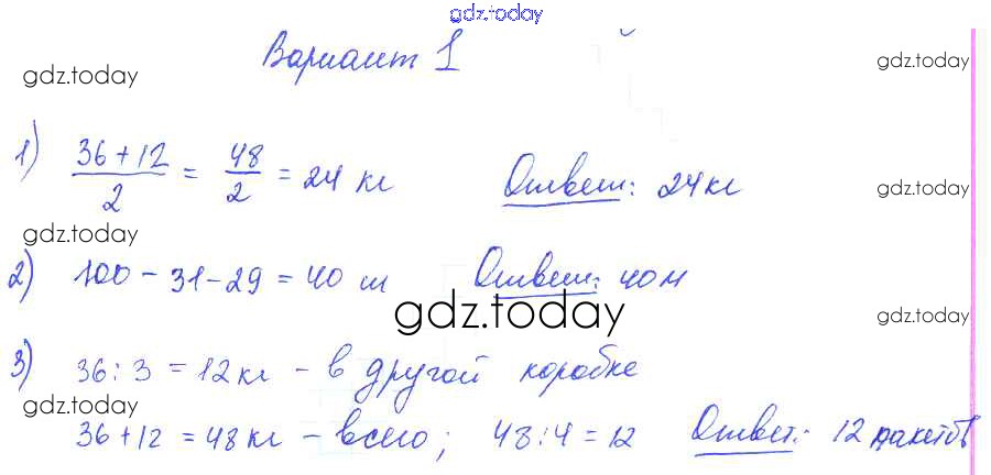 На страницах сайта gdz.today вы найдете учебный и вспомогательный материал, направленный на улучшения знаний школьной программы. ГДЗ - онлайн мир знаний Итоговая контрольная работа за 3 четверть. Контрольная работа 2 Решение 3 класс Вариант 1 Контрольным работам по Математике для 2-4 класса Волкова Просвещение Школа России 2017
