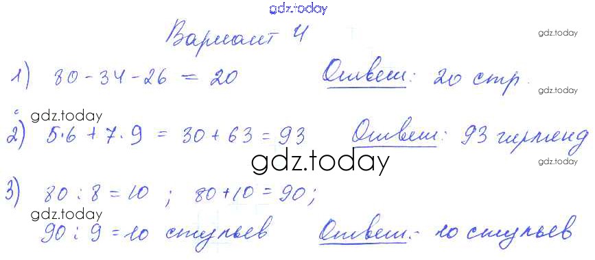 На страницах сайта gdz.today вы найдете учебный и вспомогательный материал, направленный на улучшения знаний школьной программы. ГДЗ - онлайн мир знаний Итоговая контрольная работа за 3 четверть. Контрольная работа 2 Решение 3 класс Вариант 4 Контрольным работам по Математике для 2-4 класса Волкова Просвещение Школа России 2017