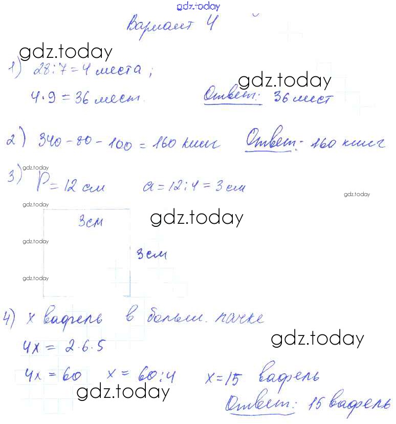 На страницах сайта gdz.today вы найдете учебный и вспомогательный материал, направленный на улучшения знаний школьной программы. ГДЗ - онлайн мир знаний Итоговые контрольные работы за 3 класс. Контрольная работа 1 Решение 3 класс Вариант 4 Контрольным работам по Математике для 2-4 класса Волкова Просвещение Школа России 2017