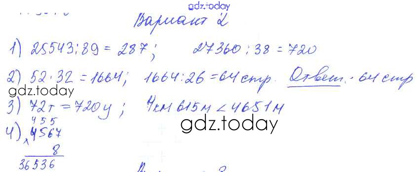 На страницах сайта gdz.today вы найдете учебный и вспомогательный материал, направленный на улучшения знаний школьной программы. ГДЗ - онлайн мир знаний Итоговые контрольные работы за курс начальной школы. Контрольная работа 2 Решение 4 класс Вариант 2 Контрольным работам по Математике для 2-4 класса Волкова Просвещение Школа России 2017