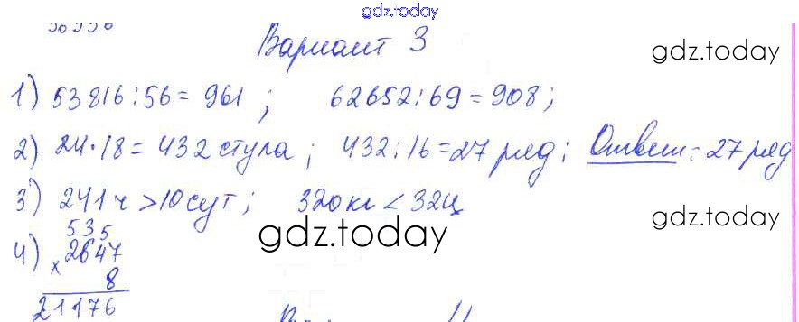 На страницах сайта gdz.today вы найдете учебный и вспомогательный материал, направленный на улучшения знаний школьной программы. ГДЗ - онлайн мир знаний Итоговые контрольные работы за курс начальной школы. Контрольная работа 2 Решение 4 класс Вариант 3 Контрольным работам по Математике для 2-4 класса Волкова Просвещение Школа России 2017
