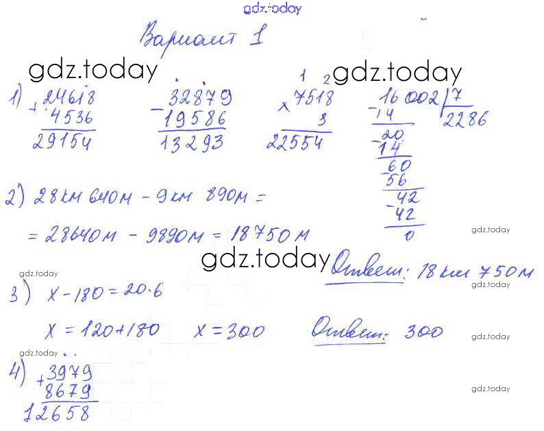 На страницах сайта gdz.today вы найдете учебный и вспомогательный материал, направленный на улучшения знаний школьной программы. ГДЗ - онлайн мир знаний Итоговая контрольная работы за 2 четверть. Контрольная работа 1 Решение 4 класс Вариант 1 Контрольным работам по Математике для 2-4 класса Волкова Просвещение Школа России 2017
