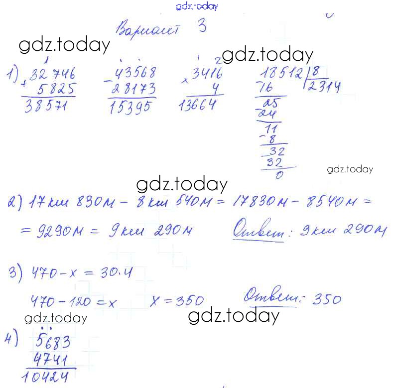 На страницах сайта gdz.today вы найдете учебный и вспомогательный материал, направленный на улучшения знаний школьной программы. ГДЗ - онлайн мир знаний Итоговая контрольная работы за 2 четверть. Контрольная работа 1 Решение 4 класс Вариант 3 Контрольным работам по Математике для 2-4 класса Волкова Просвещение Школа России 2017
