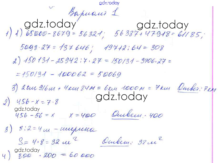 Ответы к Тема «Деление на двузначное число» стр. 71 Решение 4 класс Вариант 1 Контрольным работам по Математике для 2-4 класса Волкова Просвещение Школа России 2017