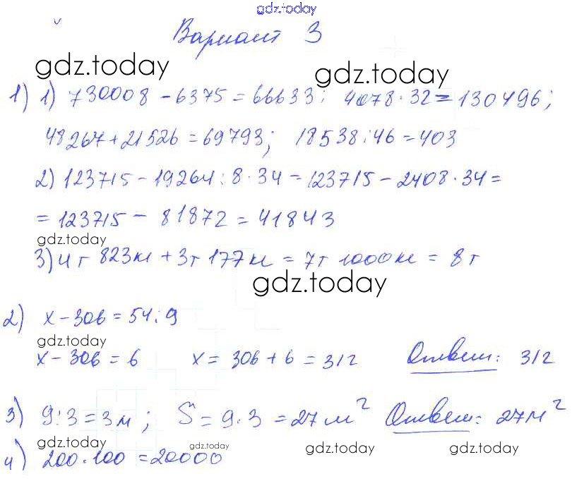 Ответы к Тема «Деление на двузначное число» стр. 71 Решение 4 класс Вариант 3 Контрольным работам по Математике для 2-4 класса Волкова Просвещение Школа России 2017