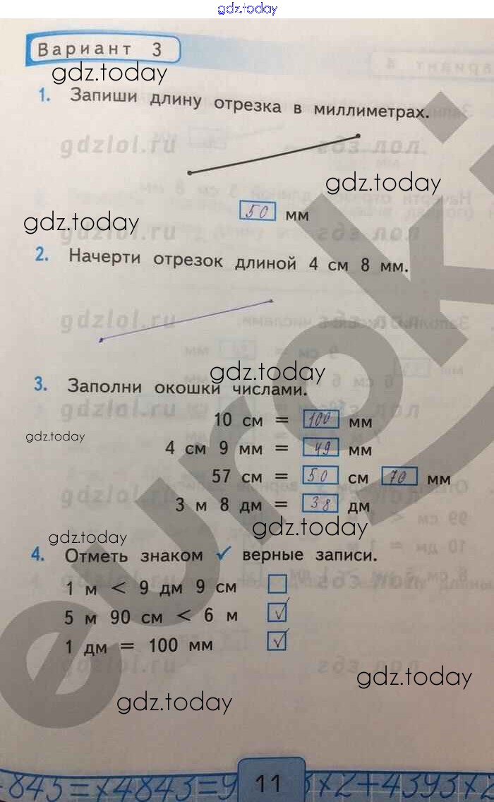 На страницах сайта gdz.today вы найдете учебный и вспомогательный материал, направленный на улучшения знаний школьной программы. ГДЗ - онлайн мир знаний Измерение длин Решение к части 1 Вар-3 Контрольным работам по Математике для 2 класса Рудницкая Экзамен УМК 2017