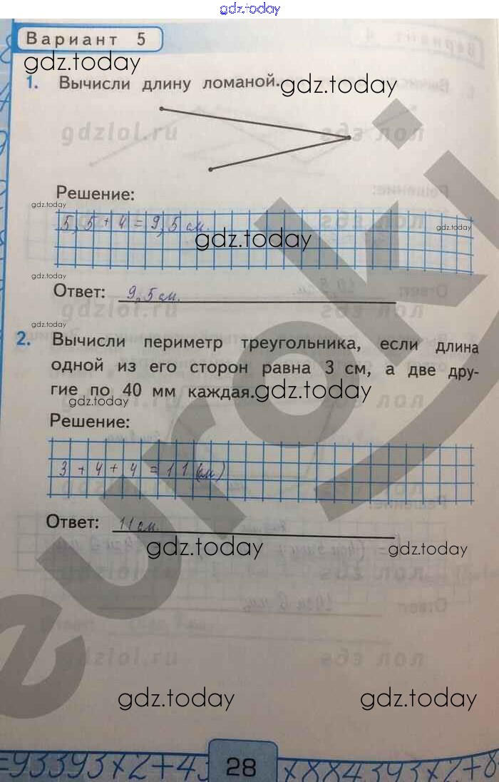 На страницах сайта gdz.today вы найдете учебный и вспомогательный материал, направленный на улучшения знаний школьной программы. ГДЗ - онлайн мир знаний Вычисление длины ломаной и периметра многоугольника Решение к части 1 Вар-5 Контрольным работам по Математике для 2 класса Рудницкая Экзамен УМК 2017