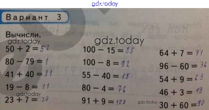 На страницах сайта gdz.today вы найдете учебный и вспомогательный материал, направленный на улучшения знаний школьной программы. ГДЗ - онлайн мир знаний Устные вычисления Решение к части 1 Вар-3 Контрольным работам по Математике для 2 класса Рудницкая Экзамен УМК 2017