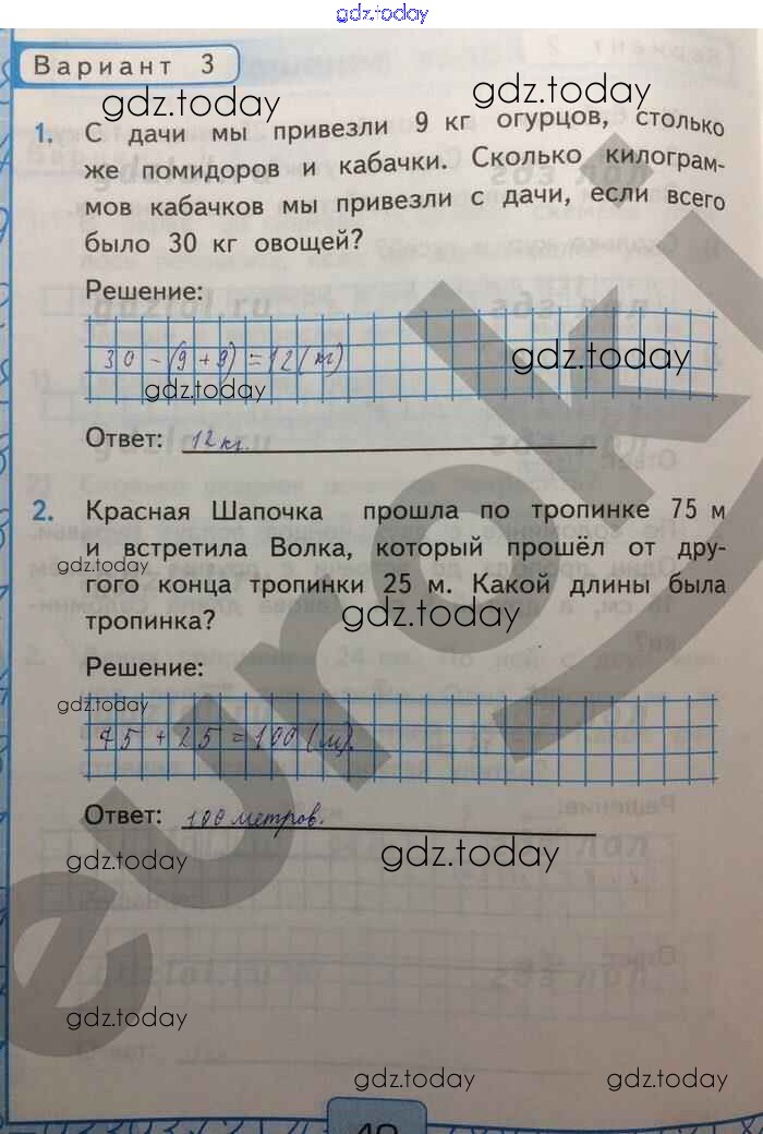 На страницах сайта gdz.today вы найдете учебный и вспомогательный материал, направленный на улучшения знаний школьной программы. ГДЗ - онлайн мир знаний Решение задач Решение к части 1 Вар-3 Контрольным работам по Математике для 2 класса Рудницкая Экзамен УМК 2017