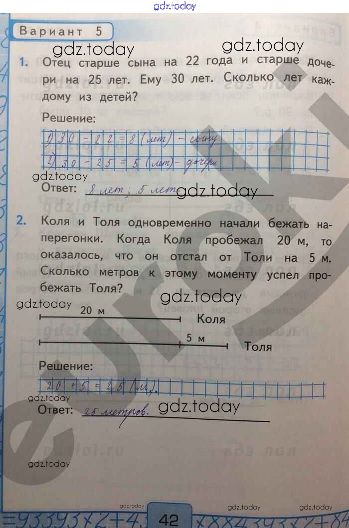 На страницах сайта gdz.today вы найдете учебный и вспомогательный материал, направленный на улучшения знаний школьной программы. ГДЗ - онлайн мир знаний Решение задач Решение к части 1 Вар-5 Контрольным работам по Математике для 2 класса Рудницкая Экзамен УМК 2017