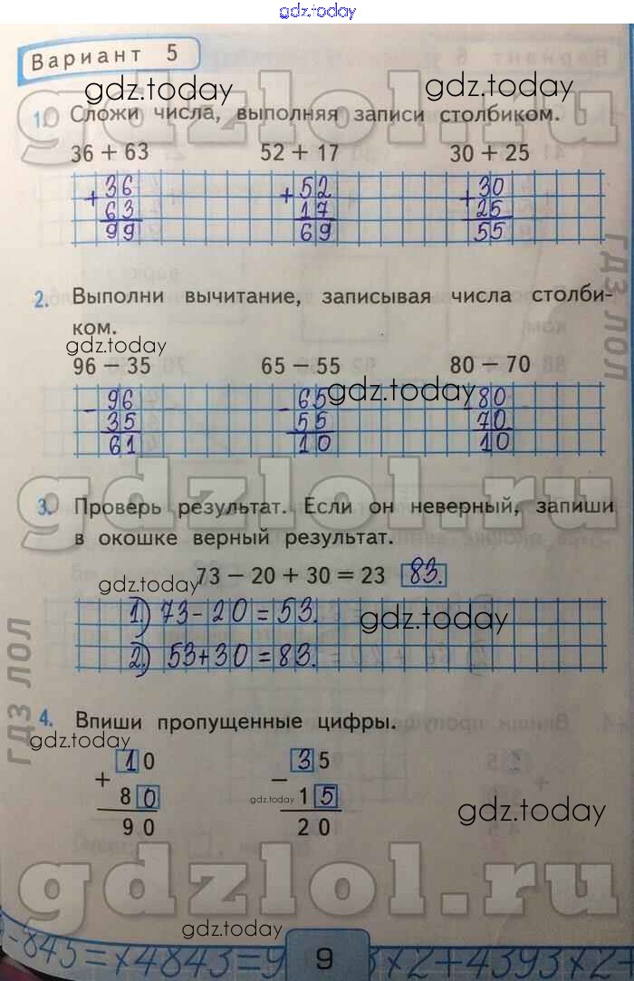 На страницах сайта gdz.today вы найдете учебный и вспомогательный материал, направленный на улучшения знаний школьной программы. ГДЗ - онлайн мир знаний Сложение и вычитание без перехода через десяток Решение к части 2 Вар-5 Контрольным работам по Математике для 2 класса Рудницкая Экзамен УМК 2017