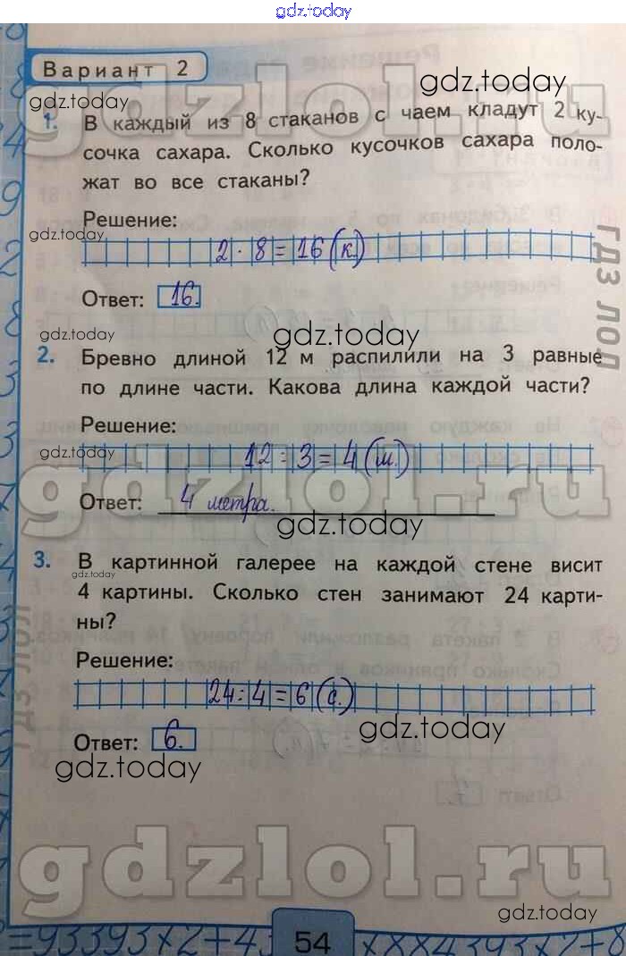 На страницах сайта gdz.today вы найдете учебный и вспомогательный материал, направленный на улучшения знаний школьной программы. ГДЗ - онлайн мир знаний Решение задач на умножение и деление Решение к части 2 Вар-2 Контрольным работам по Математике для 2 класса Рудницкая Экзамен УМК 2017