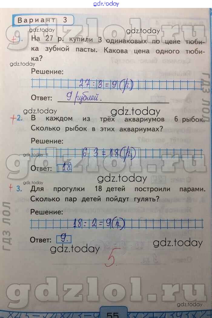 Ответы к Решение задач на умножение и деление Решение к части 2 Вар-3 Контрольным работам по Математике для 2 класса Рудницкая Экзамен УМК 2017