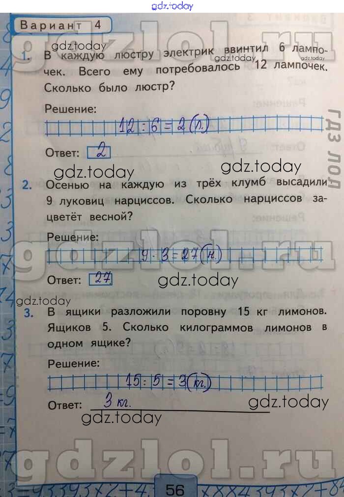 На страницах сайта gdz.today вы найдете учебный и вспомогательный материал, направленный на улучшения знаний школьной программы. ГДЗ - онлайн мир знаний Решение задач на умножение и деление Решение к части 2 Вар-4 Контрольным работам по Математике для 2 класса Рудницкая Экзамен УМК 2017