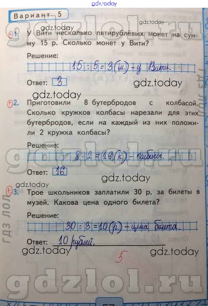 На страницах сайта gdz.today вы найдете учебный и вспомогательный материал, направленный на улучшения знаний школьной программы. ГДЗ - онлайн мир знаний Решение задач на умножение и деление Решение к части 2 Вар-5 Контрольным работам по Математике для 2 класса Рудницкая Экзамен УМК 2017