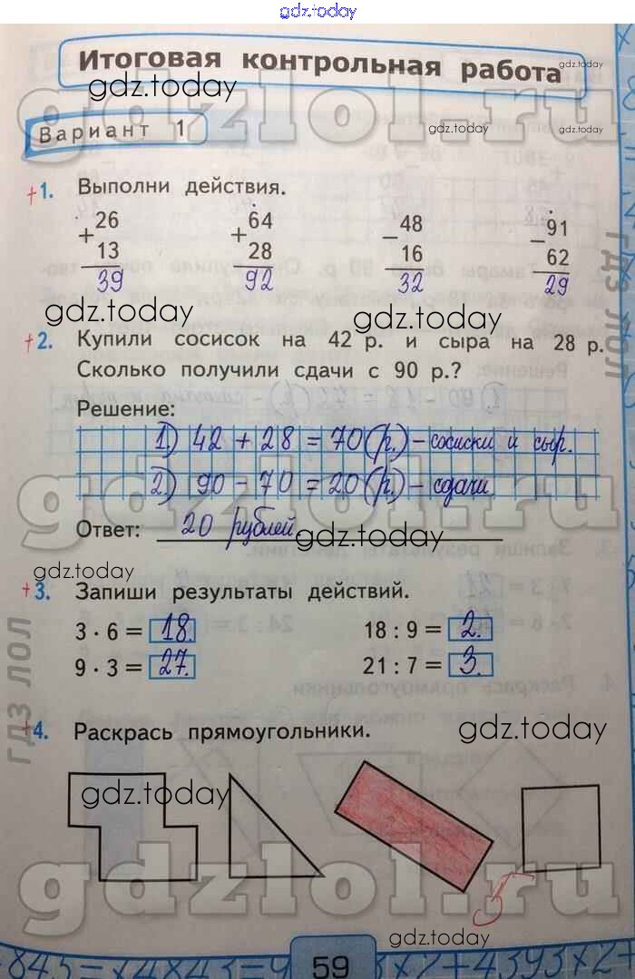 На страницах сайта gdz.today вы найдете учебный и вспомогательный материал, направленный на улучшения знаний школьной программы. ГДЗ - онлайн мир знаний Итоговая контрольная работа Решение к части 2 Вар-1 Контрольным работам по Математике для 2 класса Рудницкая Экзамен УМК 2017