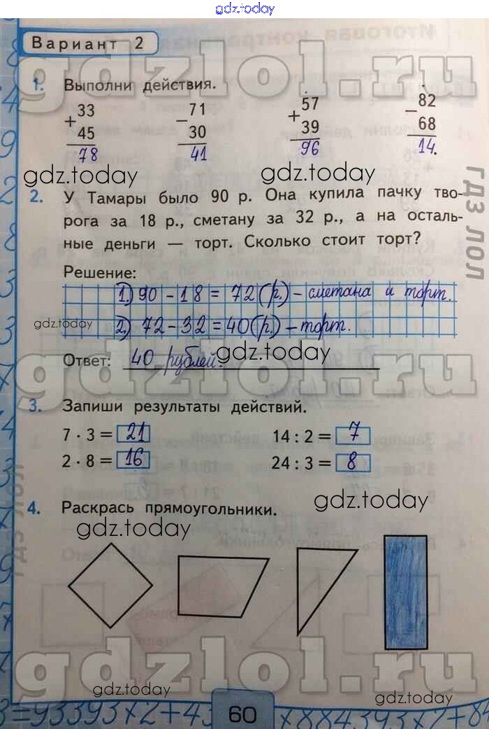 На страницах сайта gdz.today вы найдете учебный и вспомогательный материал, направленный на улучшения знаний школьной программы. ГДЗ - онлайн мир знаний Итоговая контрольная работа Решение к части 2 Вар-2 Контрольным работам по Математике для 2 класса Рудницкая Экзамен УМК 2017