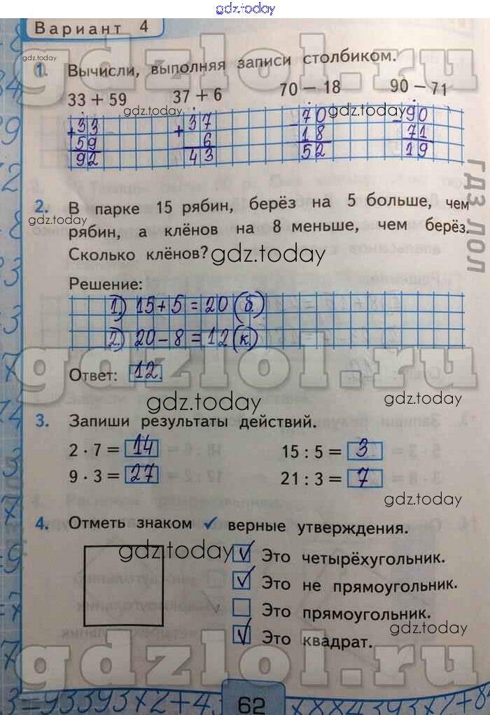 На страницах сайта gdz.today вы найдете учебный и вспомогательный материал, направленный на улучшения знаний школьной программы. ГДЗ - онлайн мир знаний Итоговая контрольная работа Решение к части 2 Вар-4 Контрольным работам по Математике для 2 класса Рудницкая Экзамен УМК 2017