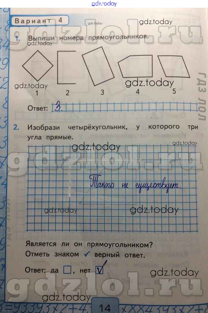 На страницах сайта gdz.today вы найдете учебный и вспомогательный материал, направленный на улучшения знаний школьной программы. ГДЗ - онлайн мир знаний Прямоугольник Решение к части 2 Вар-4 Контрольным работам по Математике для 2 класса Рудницкая Экзамен УМК 2017