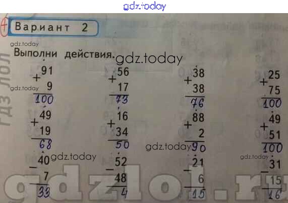 На страницах сайта gdz.today вы найдете учебный и вспомогательный материал, направленный на улучшения знаний школьной программы. ГДЗ - онлайн мир знаний Письменные приёмы сложения и вычитания с переходом через десяток Решение к части 2 Вар-2 Контрольным работам по Математике для 2 класса Рудницкая Экзамен УМК 2017