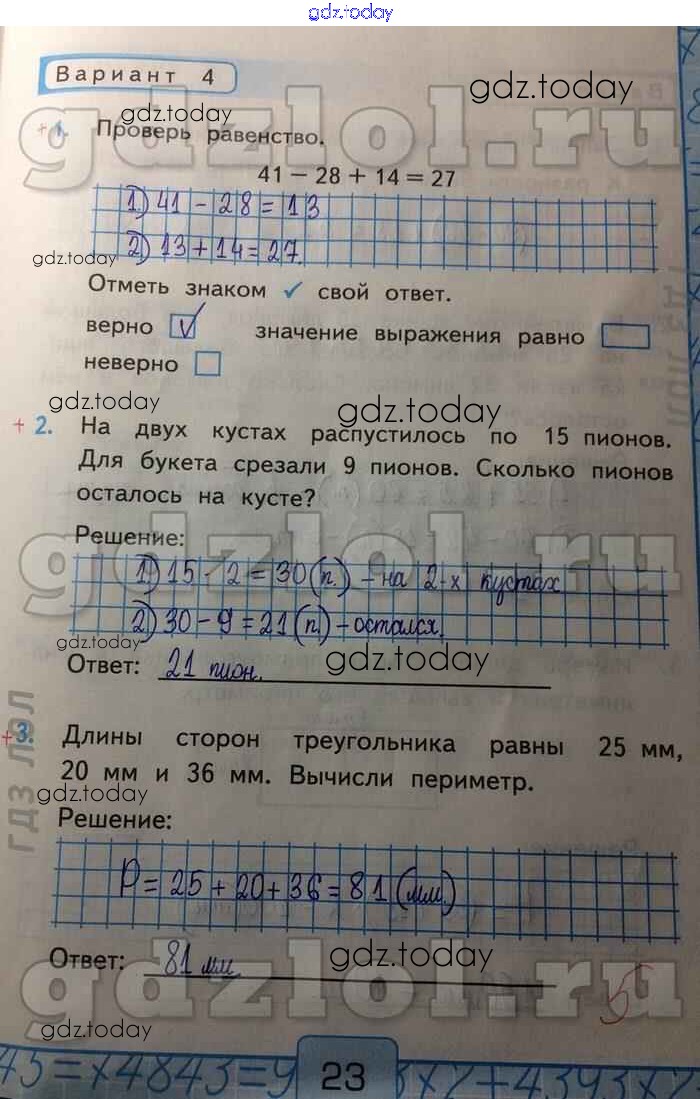 На страницах сайта gdz.today вы найдете учебный и вспомогательный материал, направленный на улучшения знаний школьной программы. ГДЗ - онлайн мир знаний Сложение и вычитание в пределах 100 Решение к части 2 Вар-4 Контрольным работам по Математике для 2 класса Рудницкая Экзамен УМК 2017
