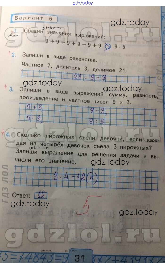 На страницах сайта gdz.today вы найдете учебный и вспомогательный материал, направленный на улучшения знаний школьной программы. ГДЗ - онлайн мир знаний Умножение и деление Решение к части 2 Вар-6 Контрольным работам по Математике для 2 класса Рудницкая Экзамен УМК 2017