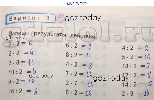 На страницах сайта gdz.today вы найдете учебный и вспомогательный материал, направленный на улучшения знаний школьной программы. ГДЗ - онлайн мир знаний Табличные случаи умножения и деления на 2 Решение к части 2 Вар-3 Контрольным работам по Математике для 2 класса Рудницкая Экзамен УМК 2017