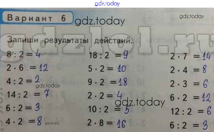 На страницах сайта gdz.today вы найдете учебный и вспомогательный материал, направленный на улучшения знаний школьной программы. ГДЗ - онлайн мир знаний Табличные случаи умножения и деления на 2 Решение к части 2 Вар-6 Контрольным работам по Математике для 2 класса Рудницкая Экзамен УМК 2017