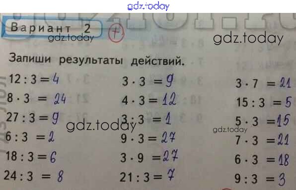 На страницах сайта gdz.today вы найдете учебный и вспомогательный материал, направленный на улучшения знаний школьной программы. ГДЗ - онлайн мир знаний Табличные случаи умножения и деления на 3 Решение к части 2 Вар-2 Контрольным работам по Математике для 2 класса Рудницкая Экзамен УМК 2017