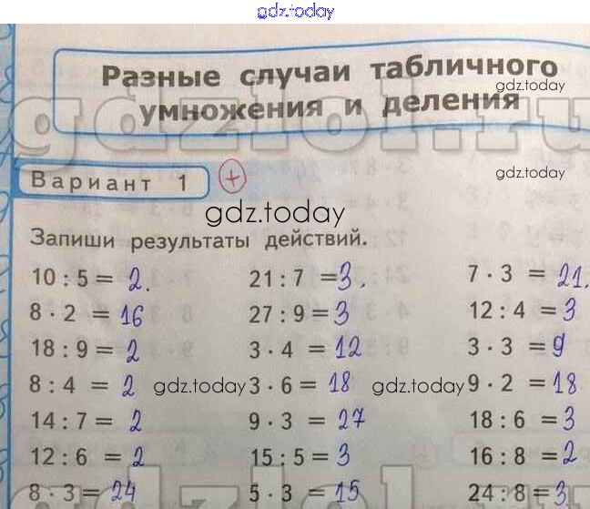 На страницах сайта gdz.today вы найдете учебный и вспомогательный материал, направленный на улучшения знаний школьной программы. ГДЗ - онлайн мир знаний Разные случаи табличного умножения и деления Решение к части 2 Вар-1 Контрольным работам по Математике для 2 класса Рудницкая Экзамен УМК 2017