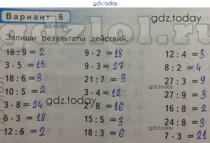На страницах сайта gdz.today вы найдете учебный и вспомогательный материал, направленный на улучшения знаний школьной программы. ГДЗ - онлайн мир знаний Разные случаи табличного умножения и деления Решение к части 2 Вар-6 Контрольным работам по Математике для 2 класса Рудницкая Экзамен УМК 2017