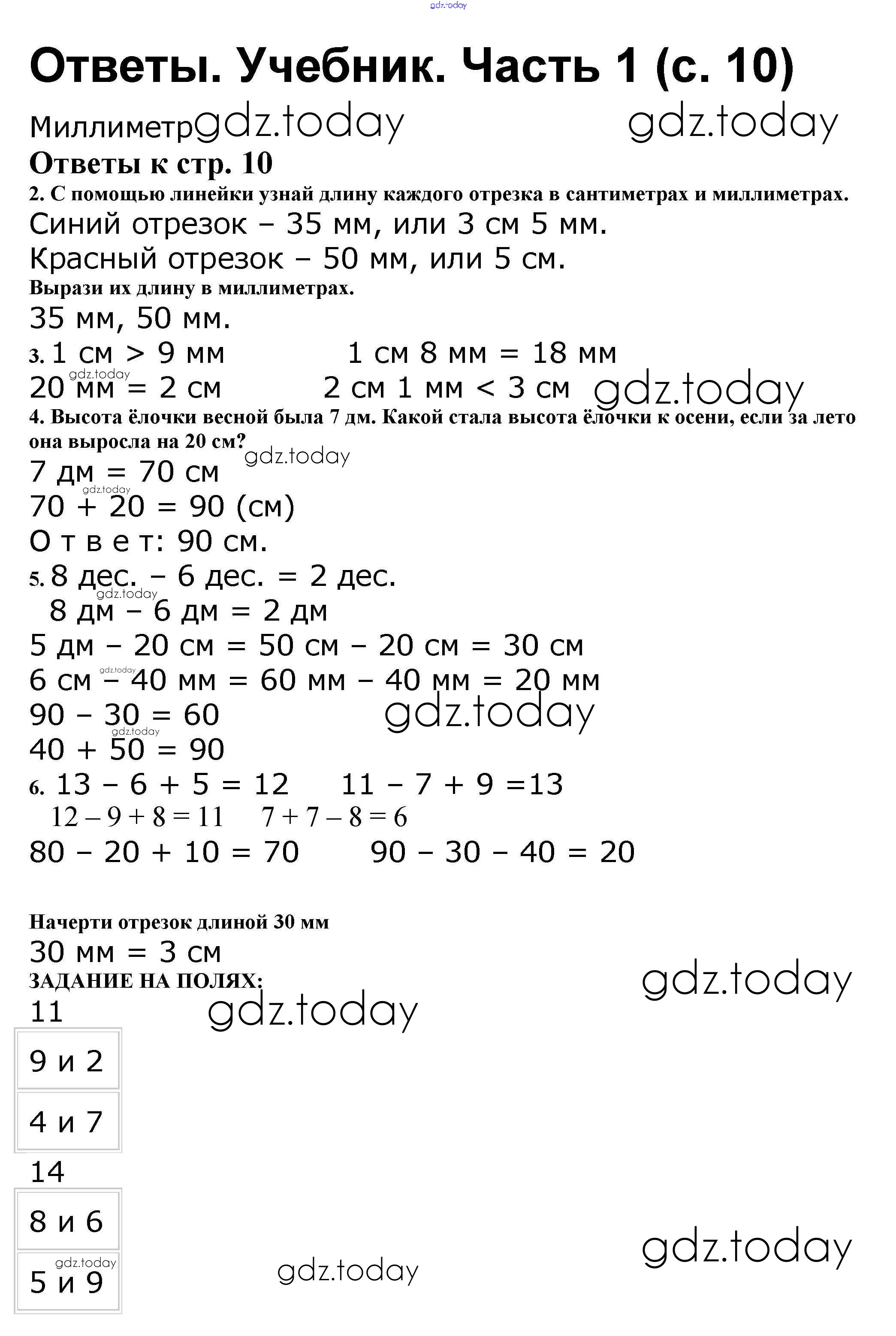 На страницах сайта gdz.today вы найдете учебный и вспомогательный материал, направленный на улучшения знаний школьной программы. ГДЗ - онлайн мир знаний Решение к части 1. Страницы 10 Учебнику по Математике для 2 класса Моро, Бантова Просвещение Школа России 2015