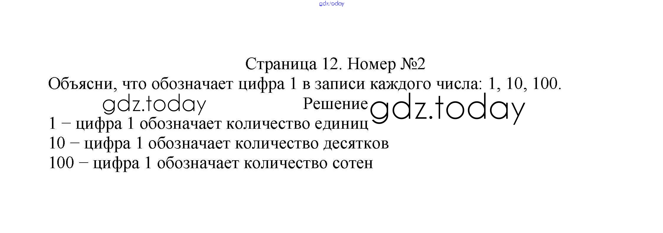 На страницах сайта gdz.today вы найдете учебный и вспомогательный материал, направленный на улучшения знаний школьной программы. ГДЗ - онлайн мир знаний Решение к части 1. Страницы 12 Учебнику по Математике для 2 класса Моро, Бантова Просвещение Школа России 2015