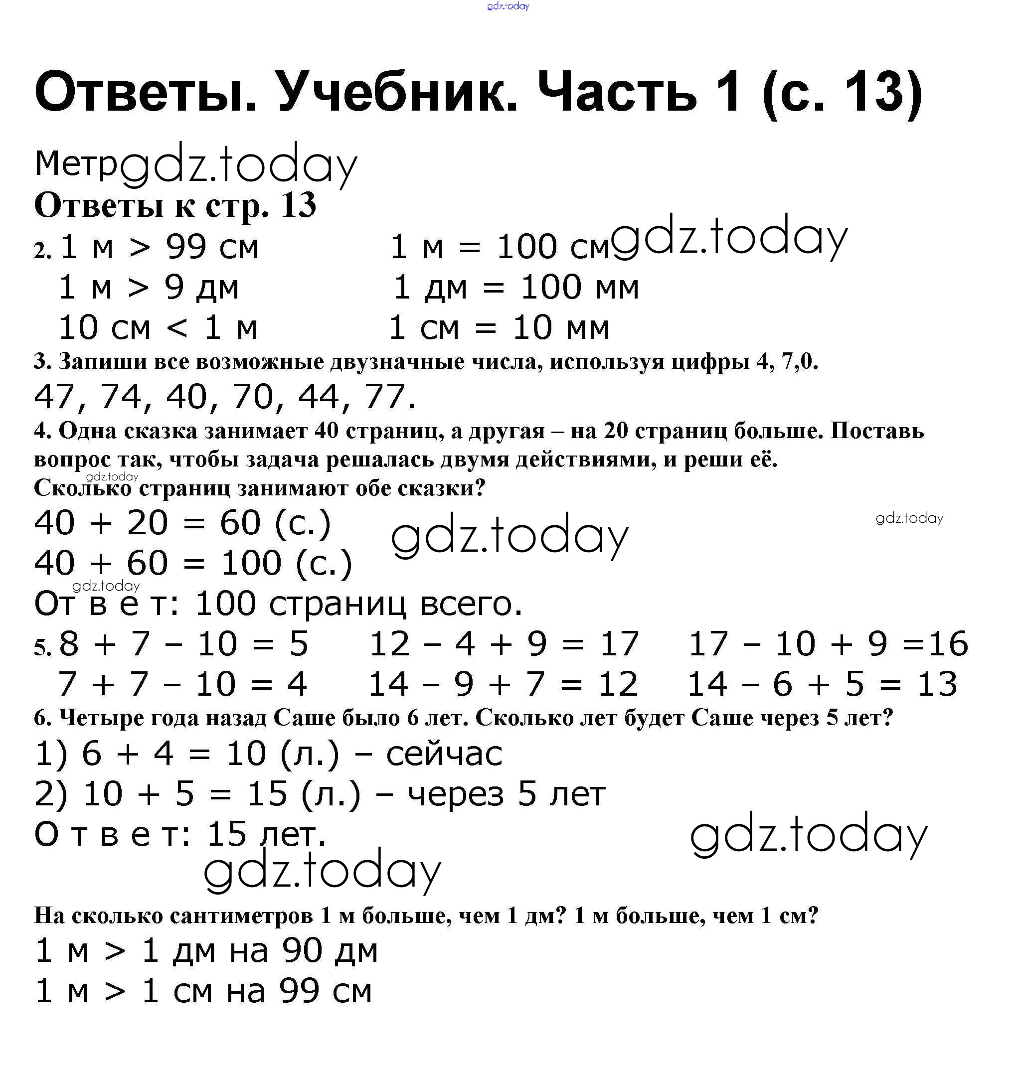 На страницах сайта gdz.today вы найдете учебный и вспомогательный материал, направленный на улучшения знаний школьной программы. ГДЗ - онлайн мир знаний Решение к части 1. Страницы 13 Учебнику по Математике для 2 класса Моро, Бантова Просвещение Школа России 2015
