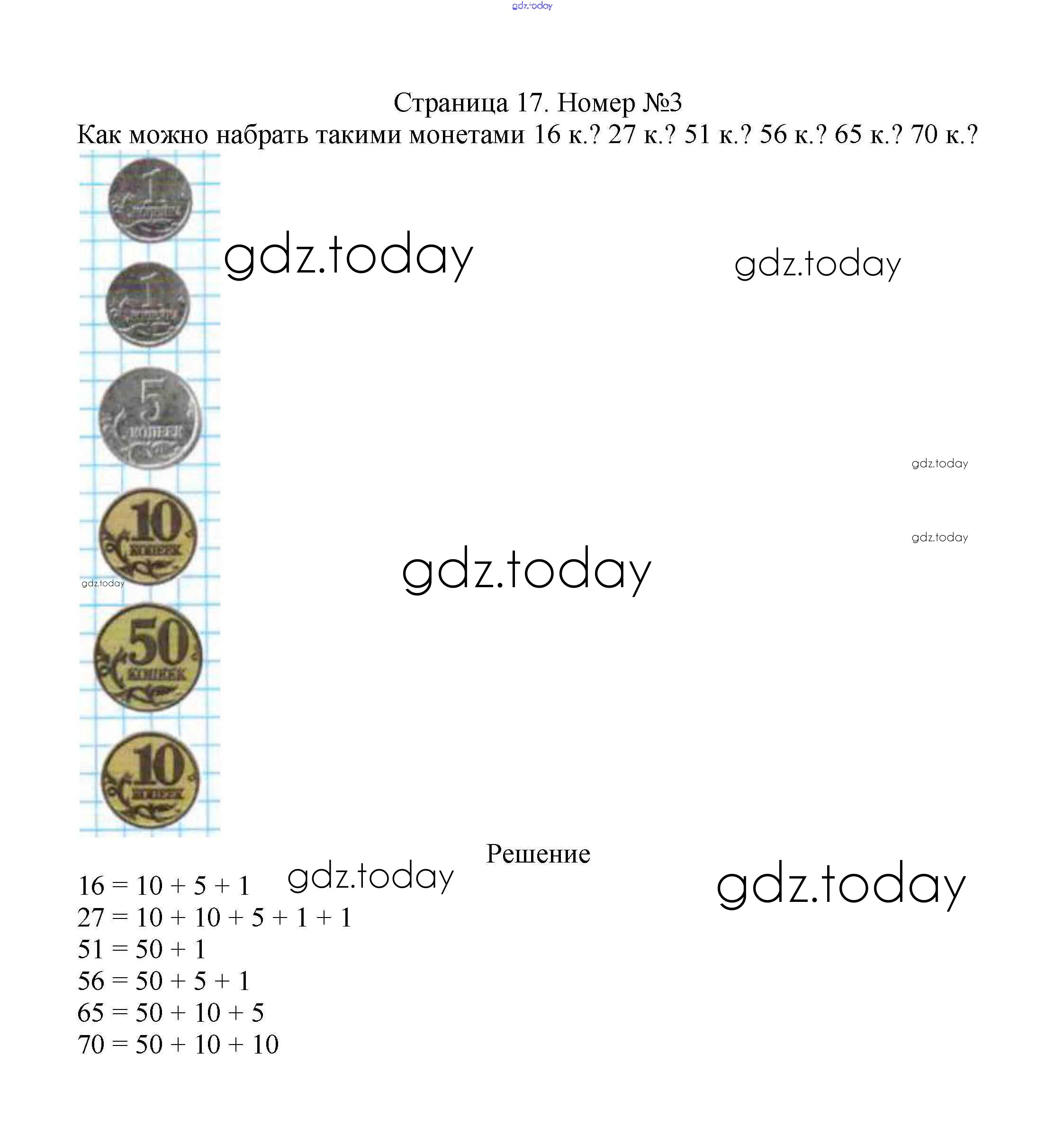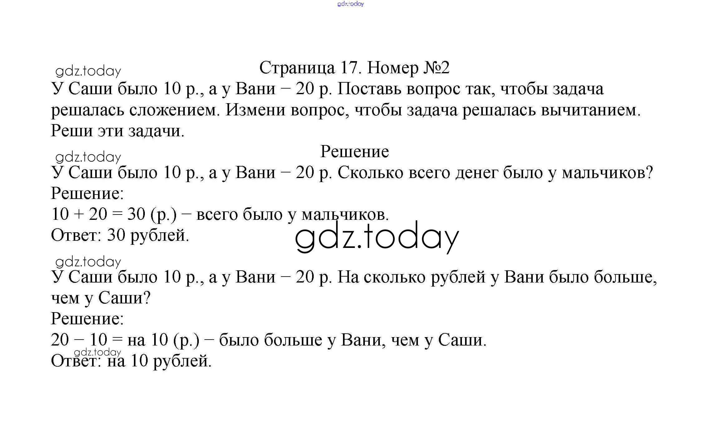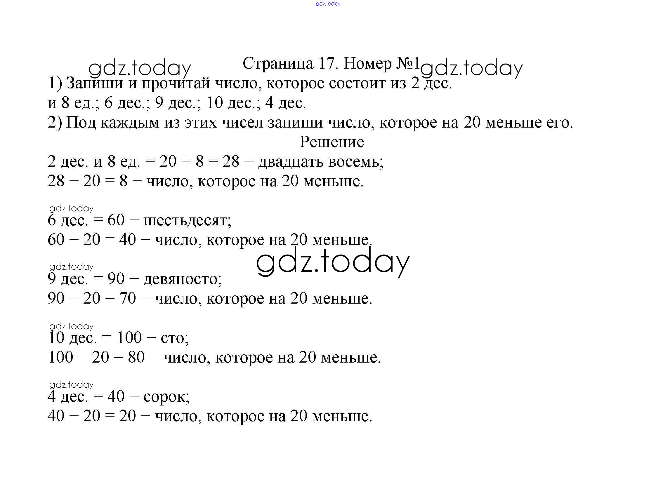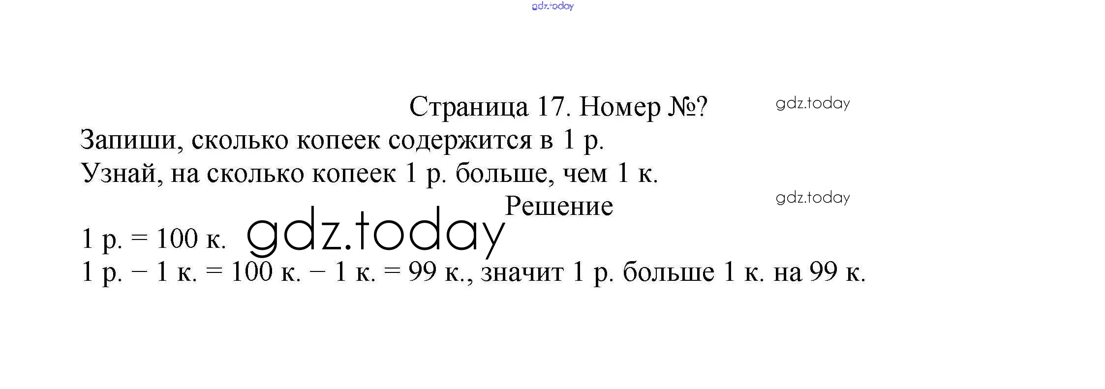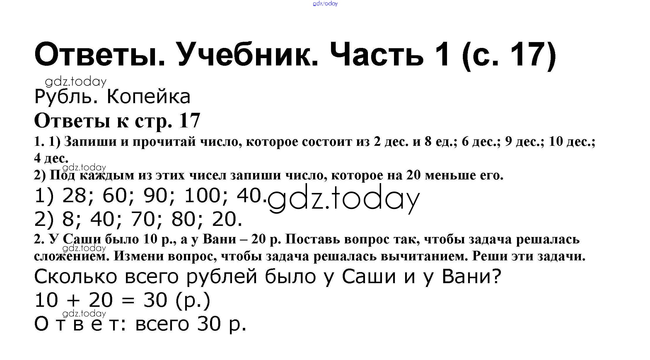 На страницах сайта gdz.today вы найдете учебный и вспомогательный материал, направленный на улучшения знаний школьной программы. ГДЗ - онлайн мир знаний Решение к части 1. Страницы 17 Учебнику по Математике для 2 класса Моро, Бантова Просвещение Школа России 2015