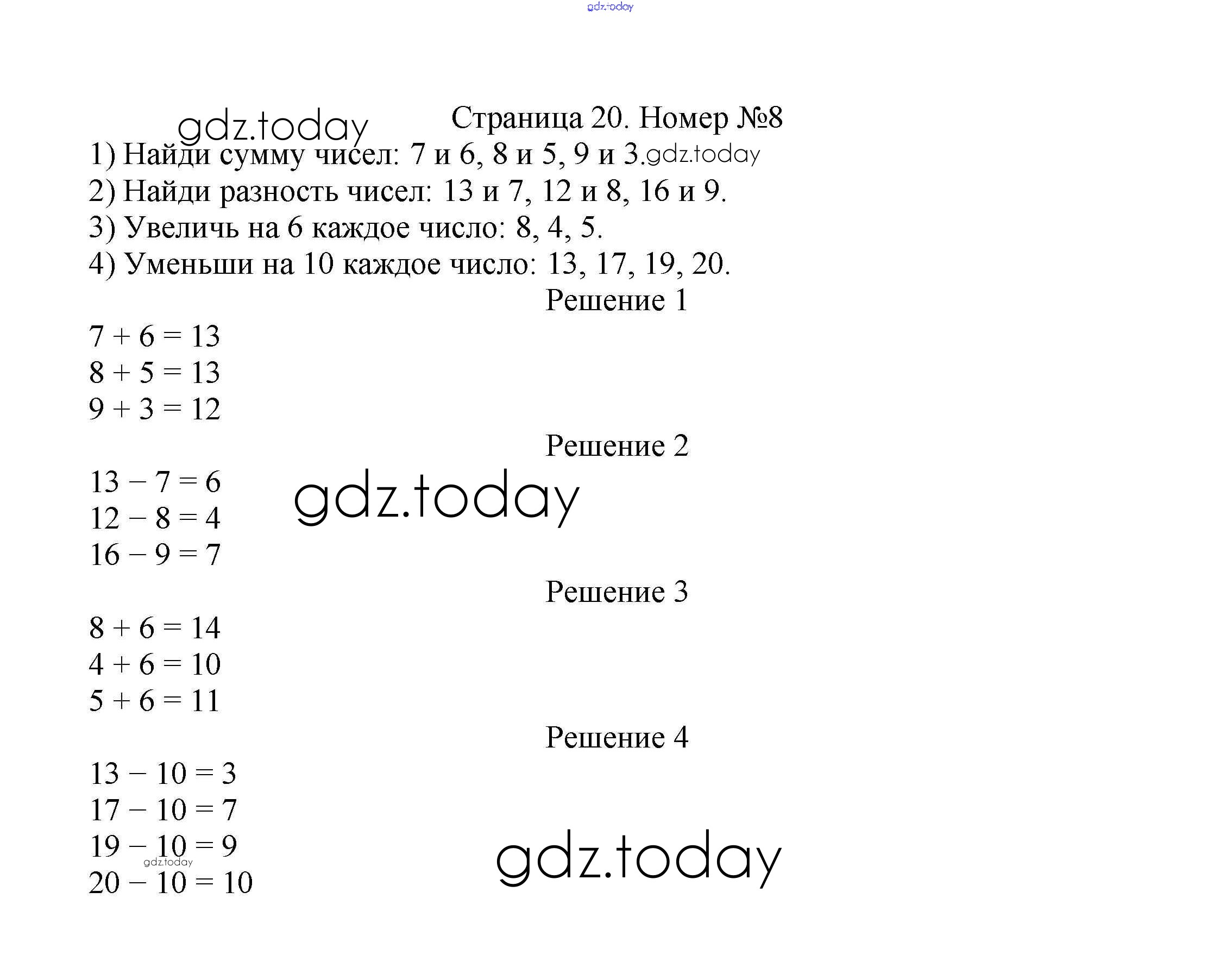 Ответы к Решение к части 1. Страницы 20 Учебнику по Математике для 2 класса Моро, Бантова Просвещение Школа России 2015