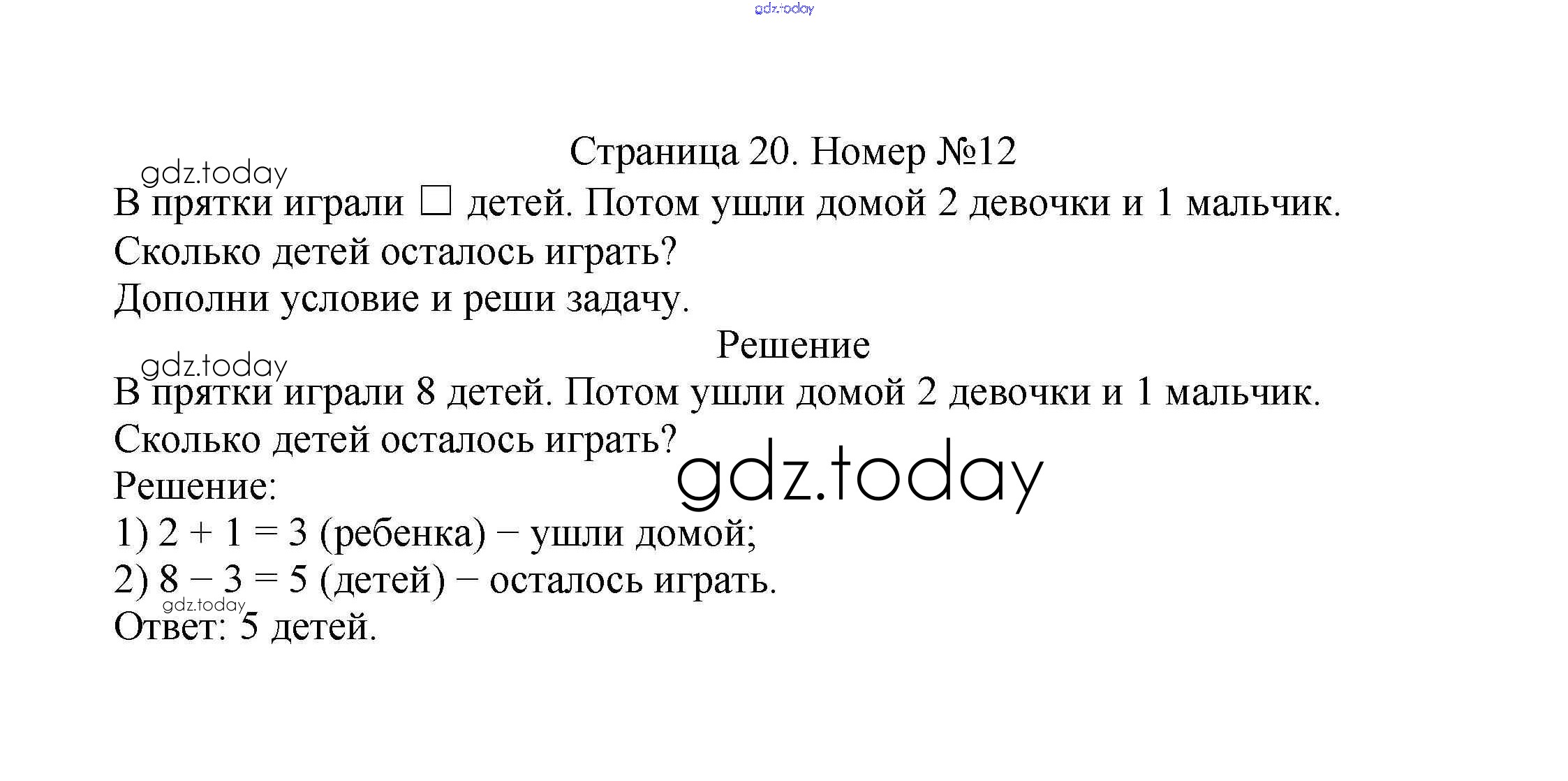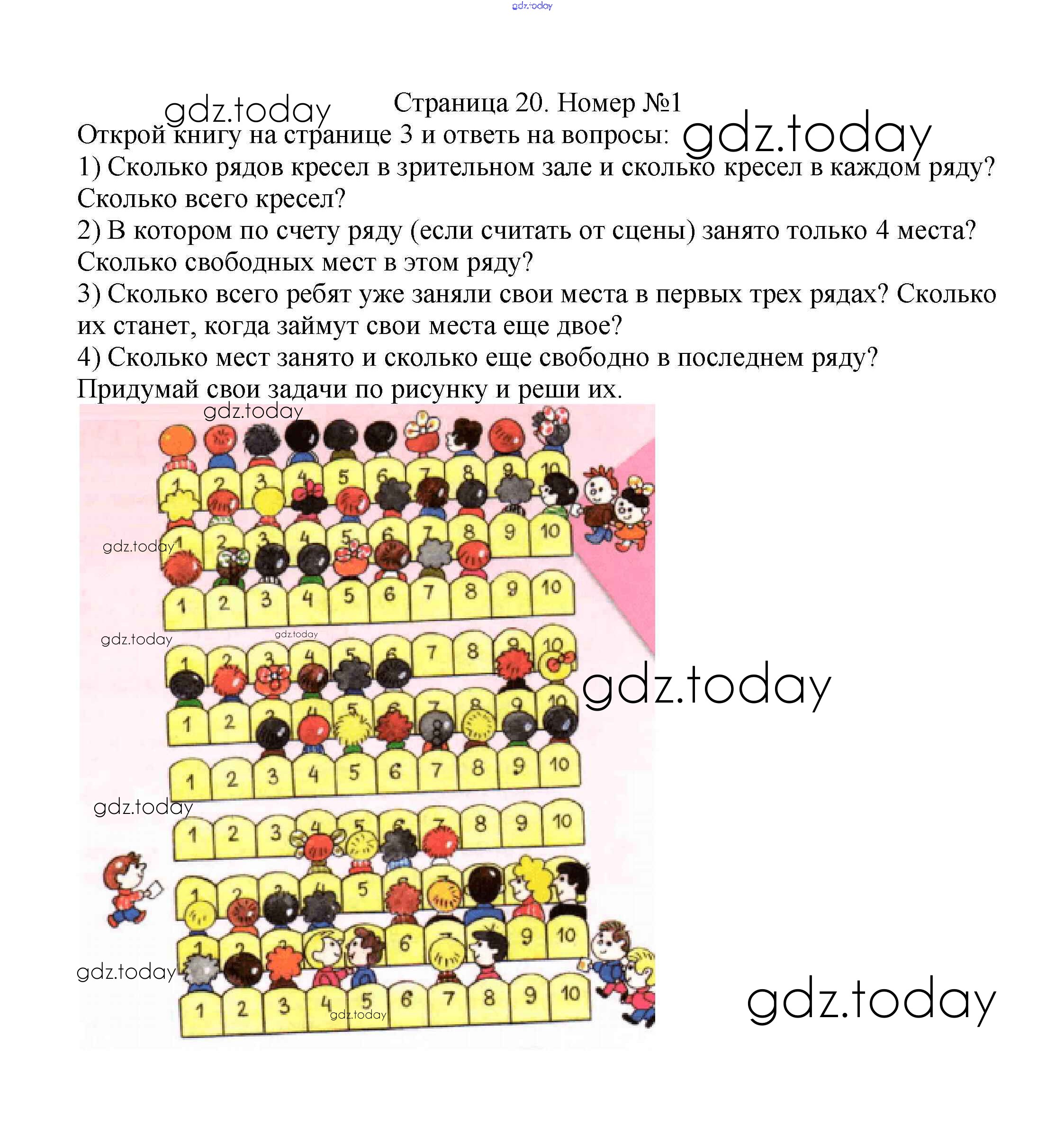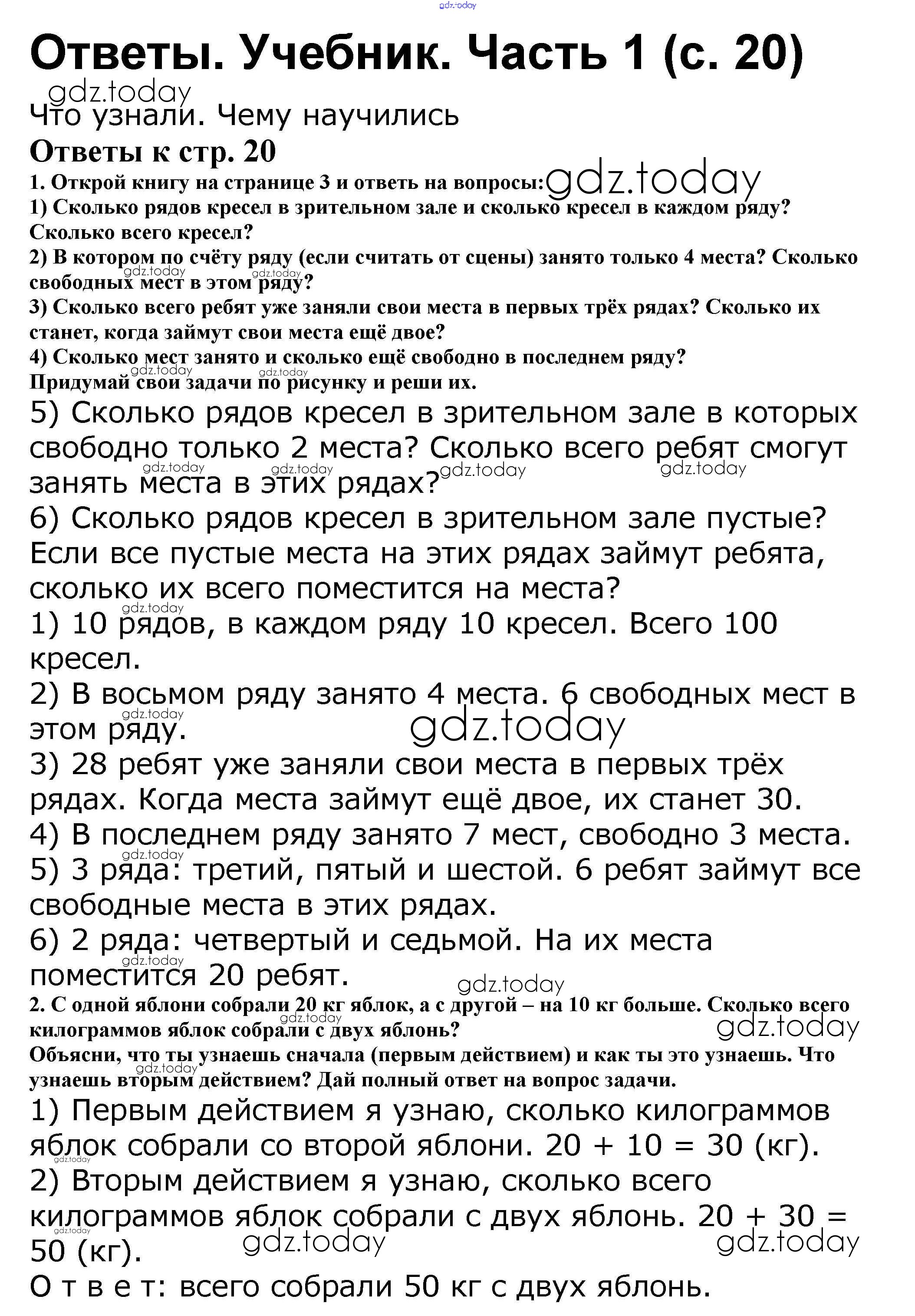 На страницах сайта gdz.today вы найдете учебный и вспомогательный материал, направленный на улучшения знаний школьной программы. ГДЗ - онлайн мир знаний Решение к части 1. Страницы 20 Учебнику по Математике для 2 класса Моро, Бантова Просвещение Школа России 2015
