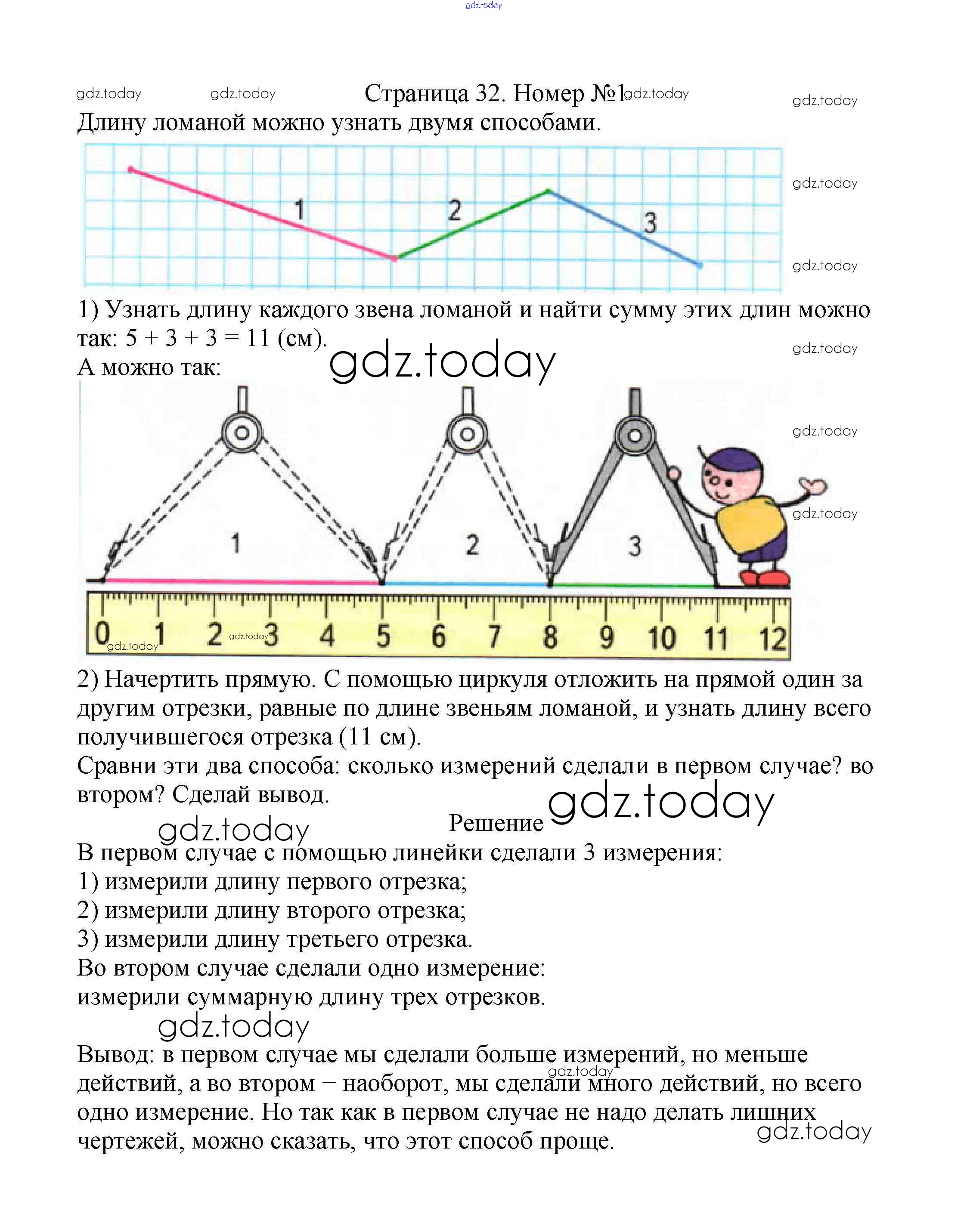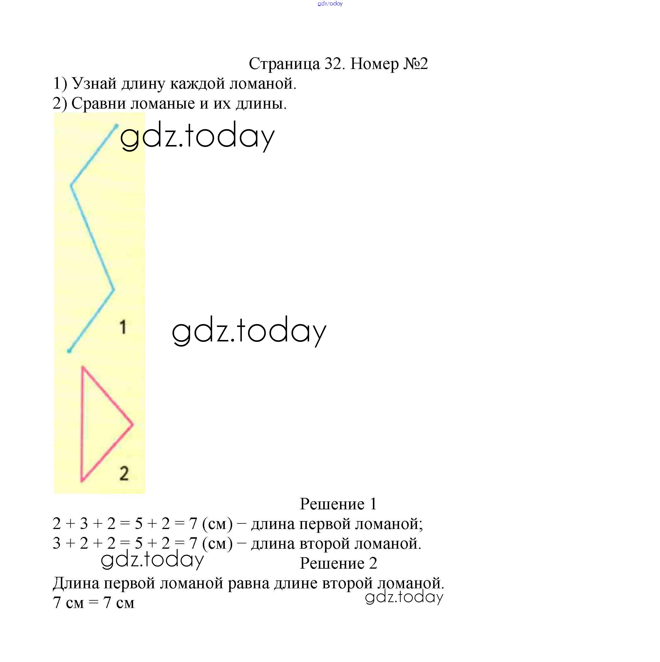 На страницах сайта gdz.today вы найдете учебный и вспомогательный материал, направленный на улучшения знаний школьной программы. ГДЗ - онлайн мир знаний Решение к части 1. Страницы 32 Учебнику по Математике для 2 класса Моро, Бантова Просвещение Школа России 2015