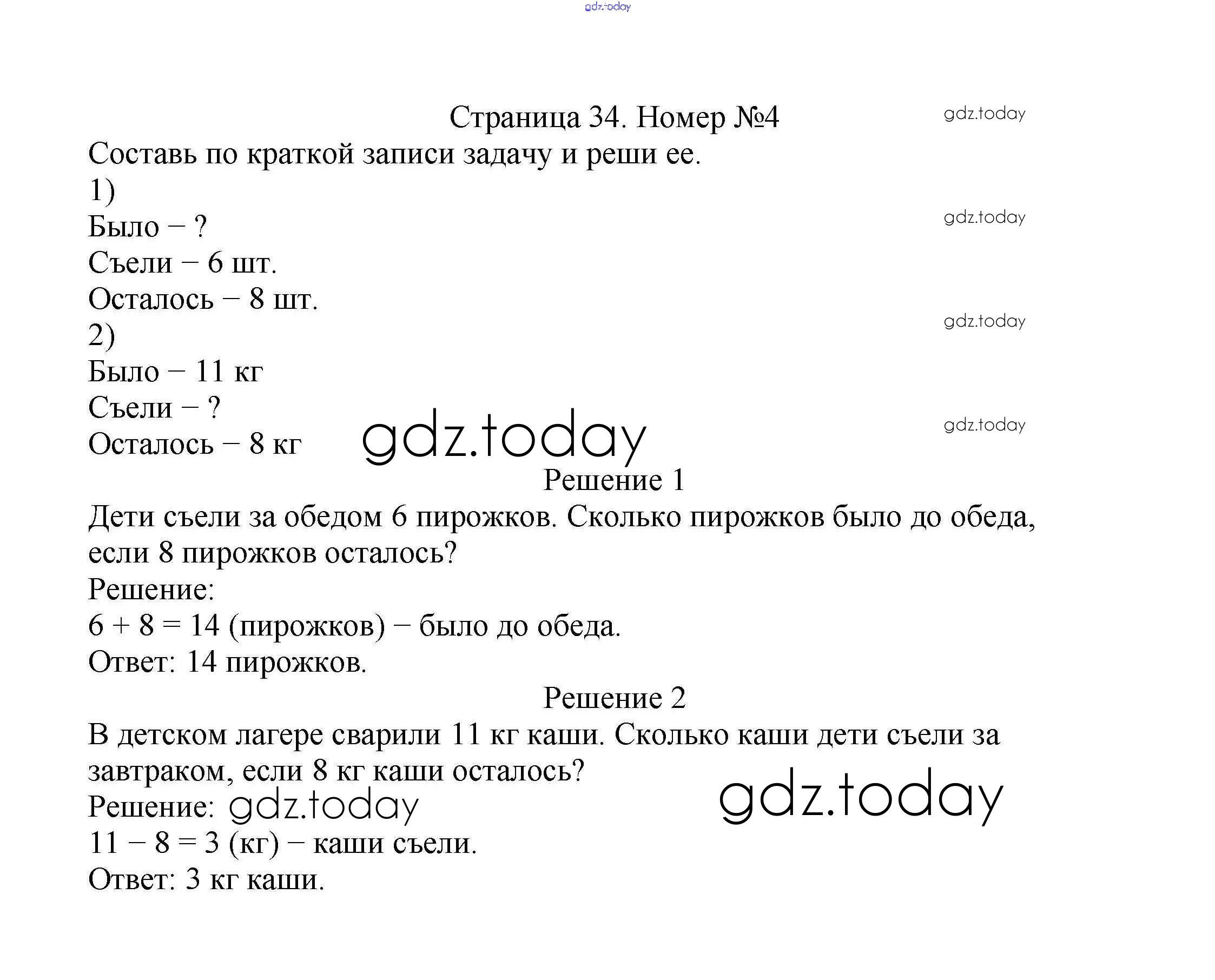 Ответы к Решение к части 1. Страницы 34 Учебнику по Математике для 2 класса Моро, Бантова Просвещение Школа России 2015