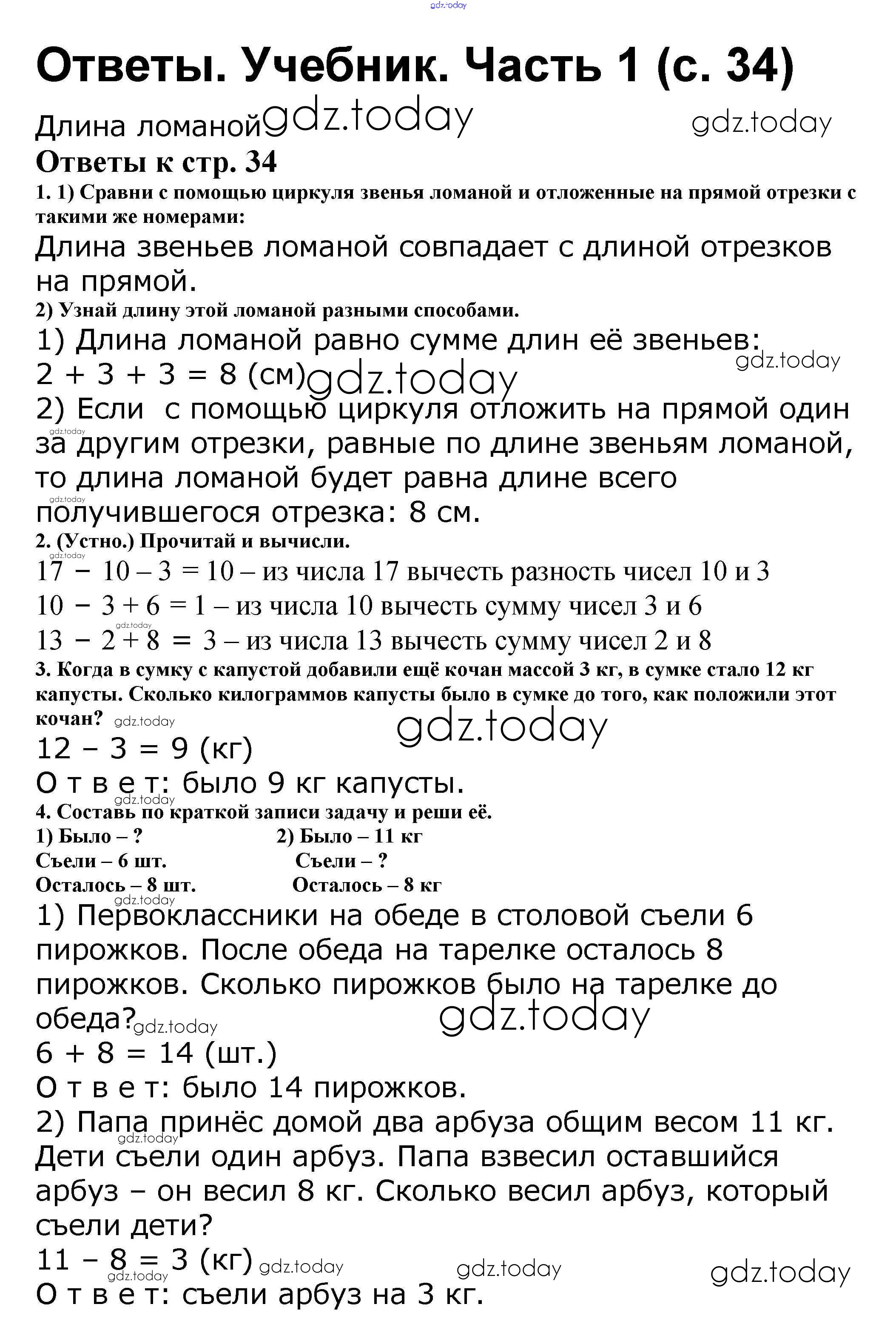 На страницах сайта gdz.today вы найдете учебный и вспомогательный материал, направленный на улучшения знаний школьной программы. ГДЗ - онлайн мир знаний Решение к части 1. Страницы 34 Учебнику по Математике для 2 класса Моро, Бантова Просвещение Школа России 2015