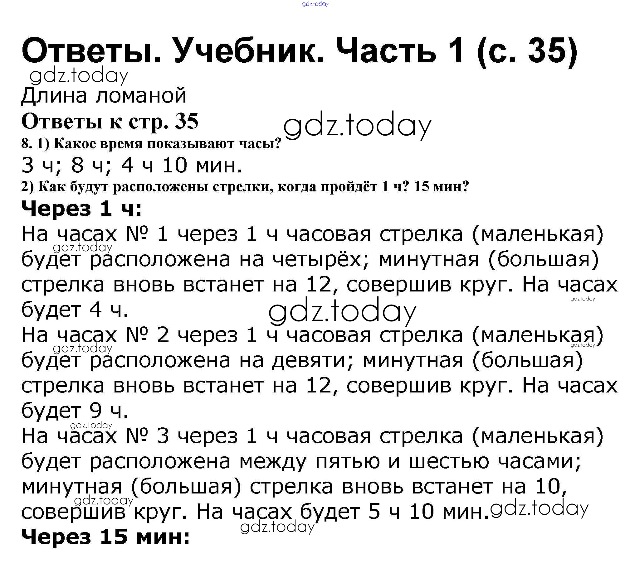 На страницах сайта gdz.today вы найдете учебный и вспомогательный материал, направленный на улучшения знаний школьной программы. ГДЗ - онлайн мир знаний Решение к части 1. Страницы 35 Учебнику по Математике для 2 класса Моро, Бантова Просвещение Школа России 2015