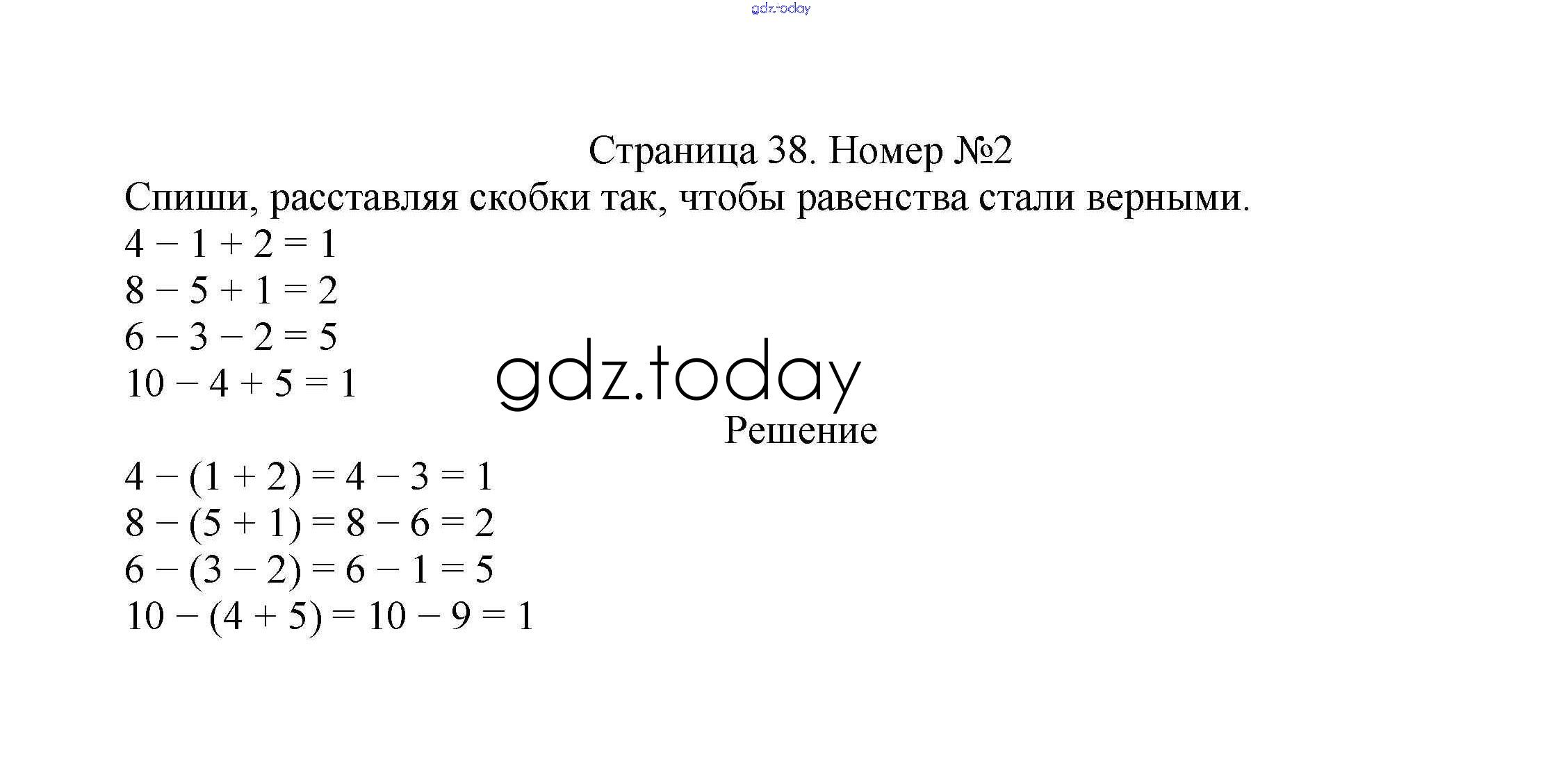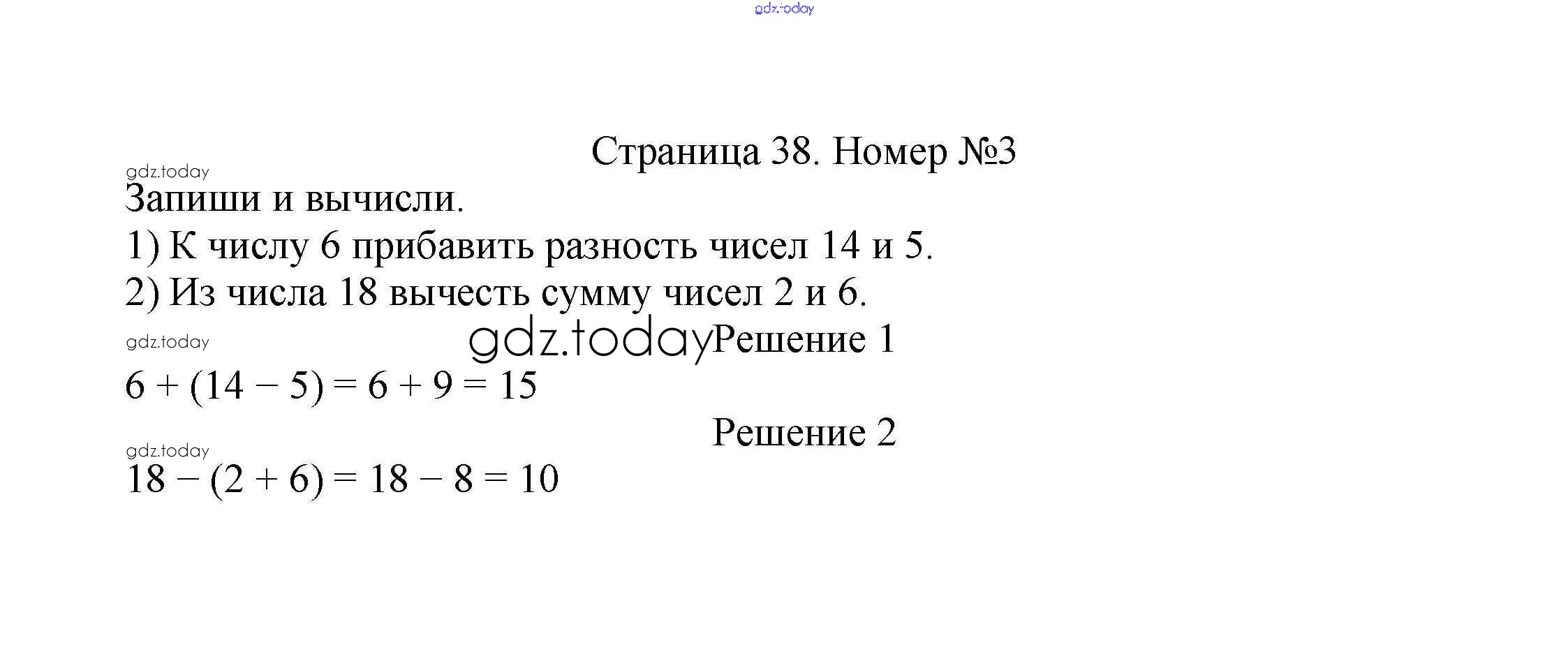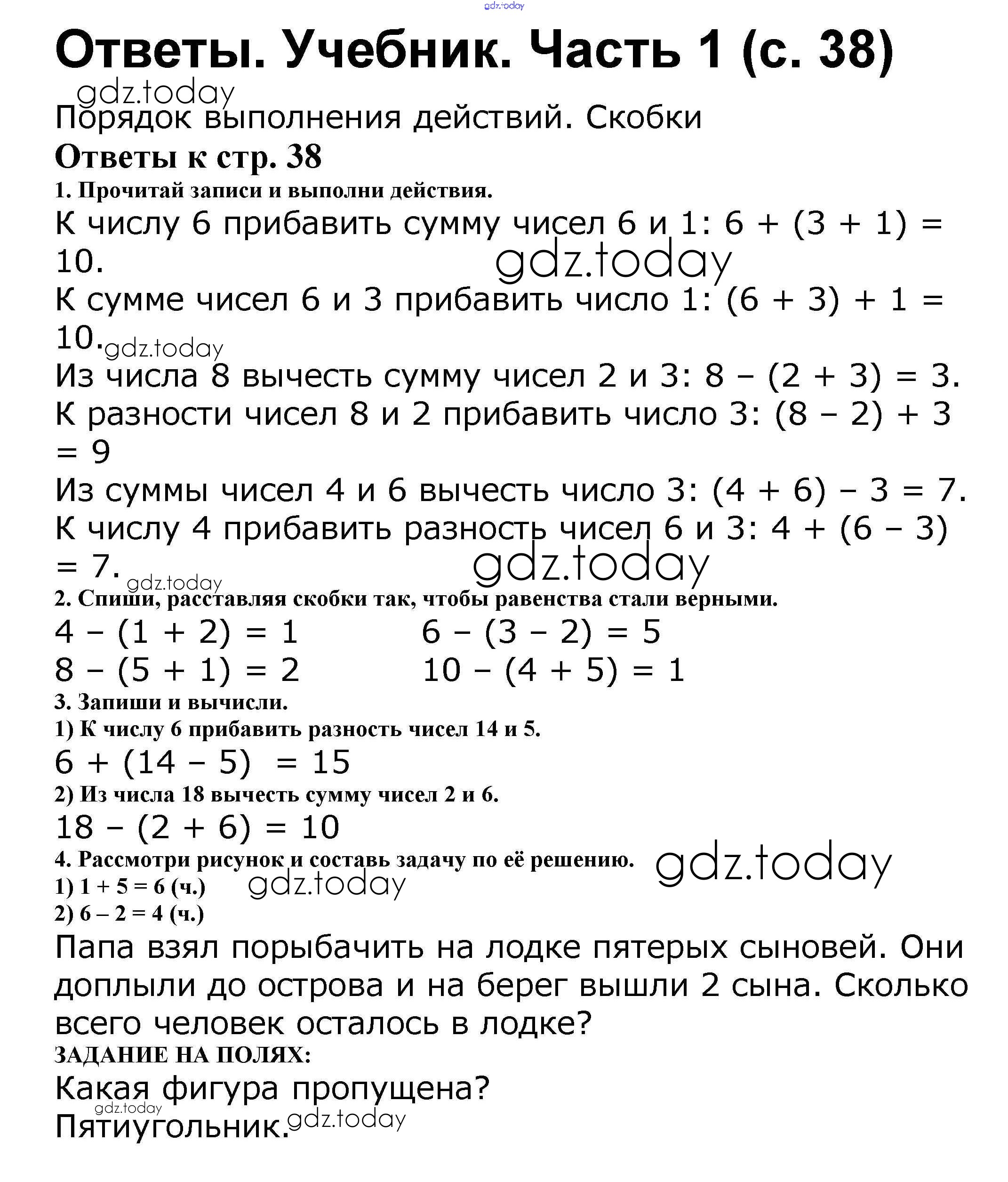 На страницах сайта gdz.today вы найдете учебный и вспомогательный материал, направленный на улучшения знаний школьной программы. ГДЗ - онлайн мир знаний Решение к части 1. Страницы 38 Учебнику по Математике для 2 класса Моро, Бантова Просвещение Школа России 2015